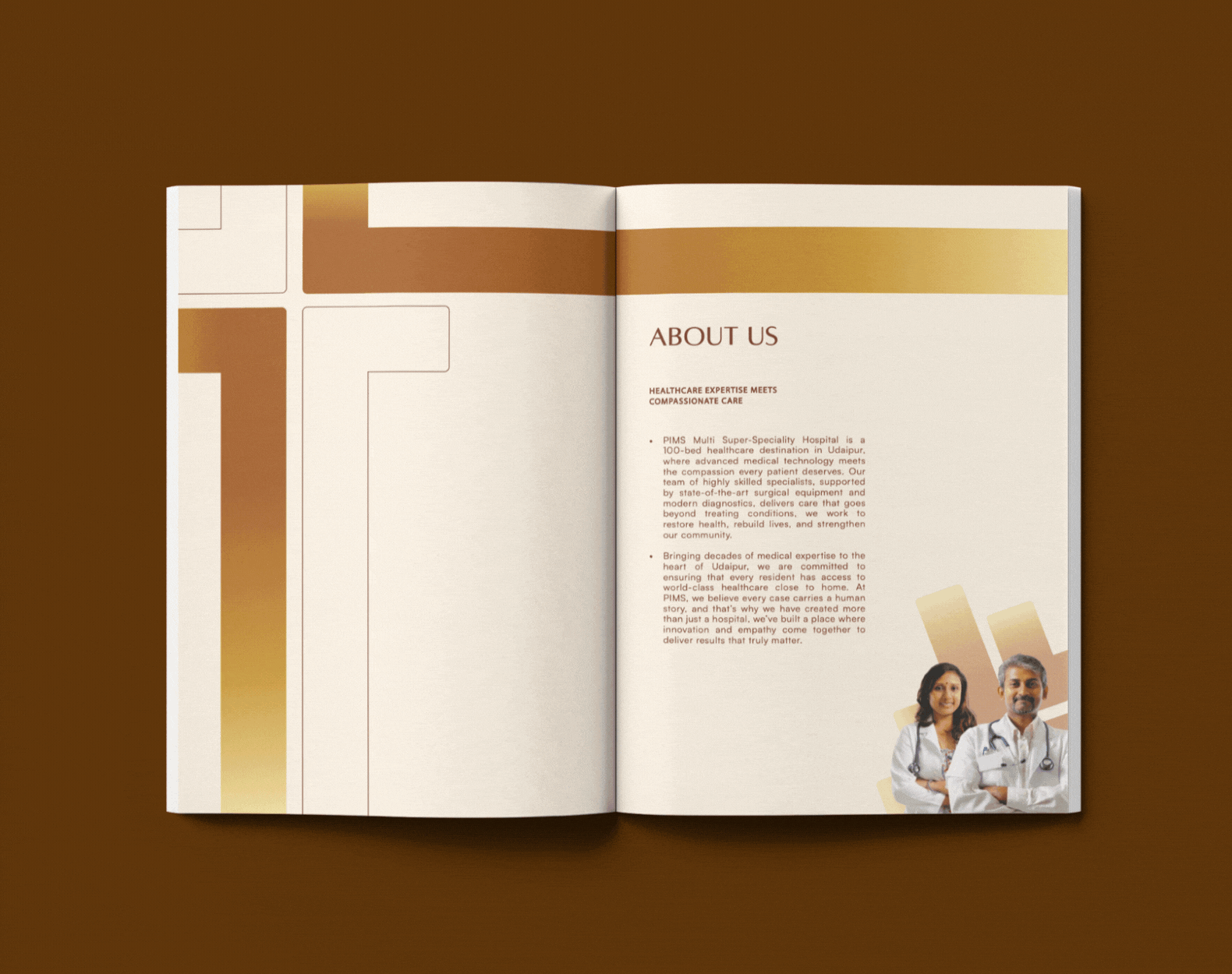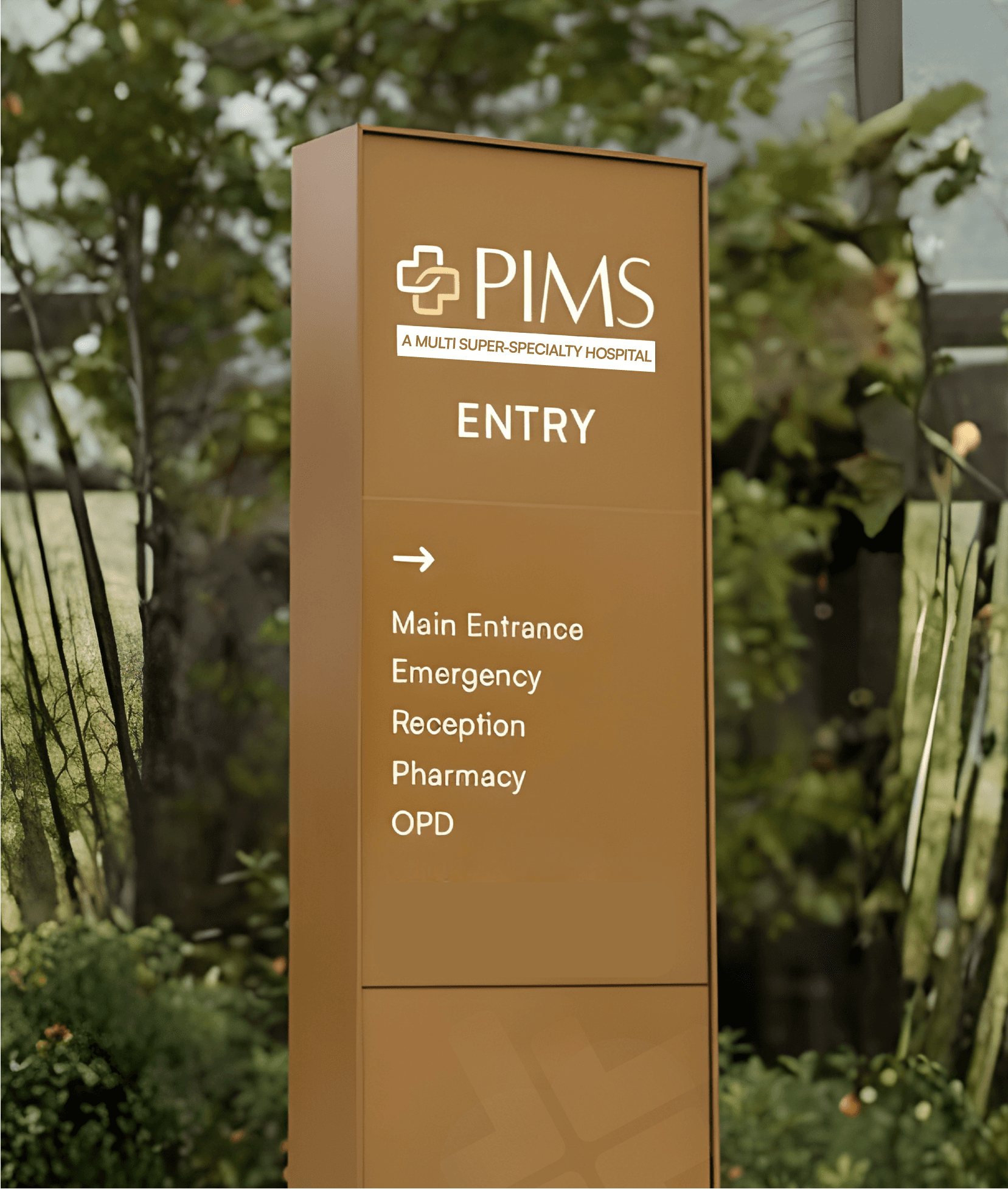PIMS Multi Super-Speciality Hospital set out to bring tier-1 healthcare standards to Udaipur — and our role was to shape an experience that matched that ambition. We spent days on-site, mapping the full patient journey and identifying every touchpoint, from the entrance to consultation areas, to understand how the brand should feel, guide, and reassure patients at every step.