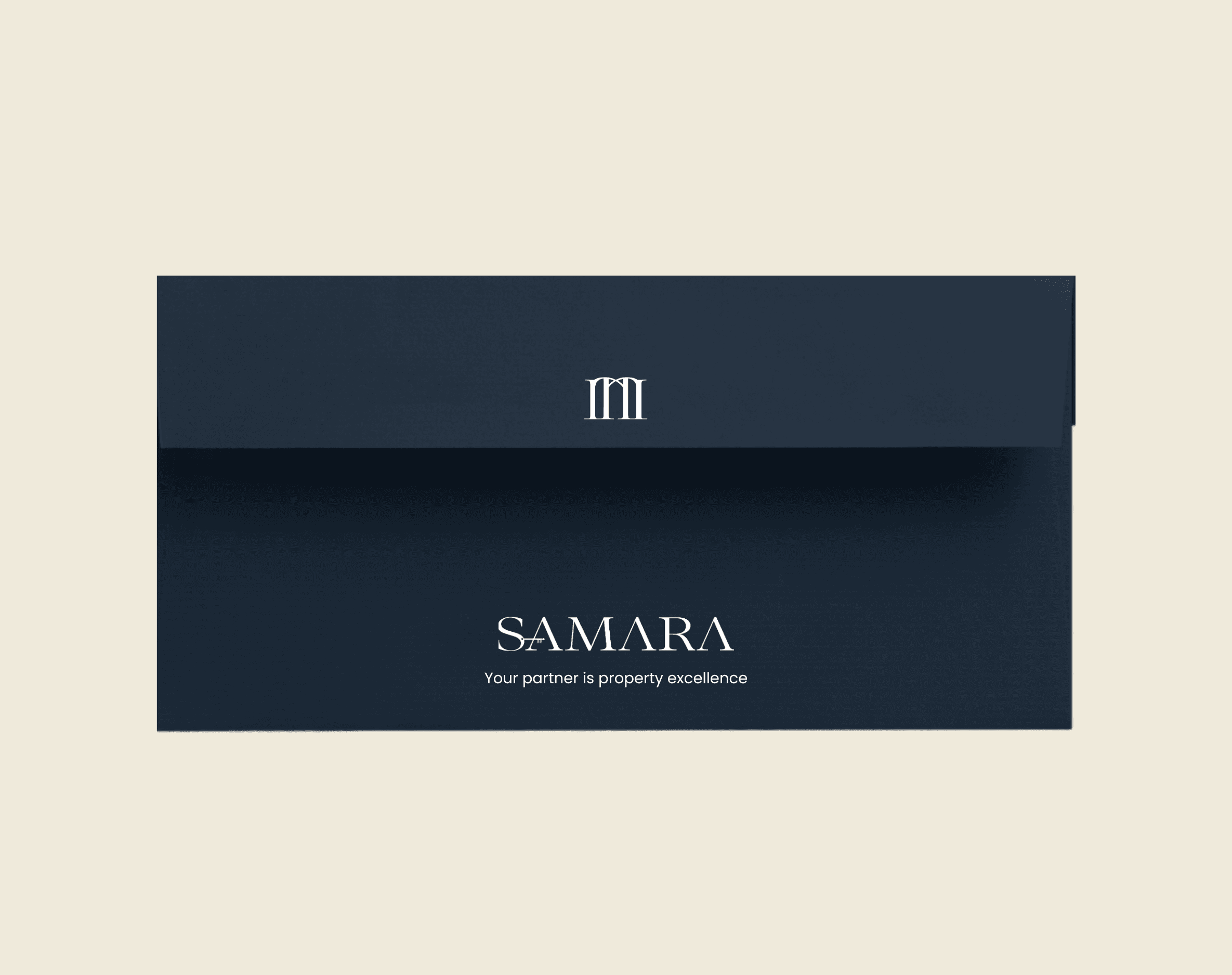 The symbol above the name represents tall buildings with connecting lines, reflecting both their high-rise projects and their role in bringing people together. The clean and elegant design reinforces Samara’s premium yet trustworthy identity.