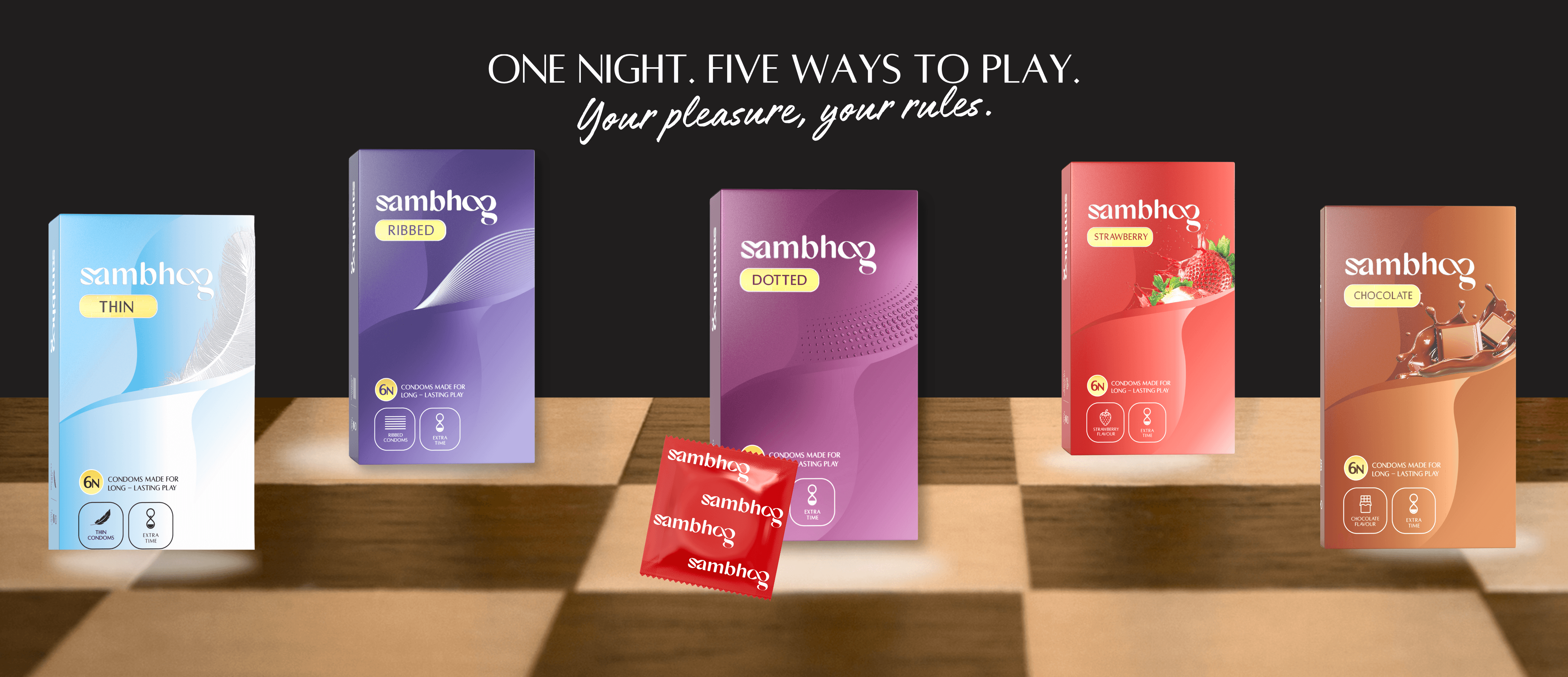 Sambhog is a new sexual wellness brand that aims to establish itself in the Indian market with condoms offering "Extra Time" as their key differentiator. In the Indian sexual wellness market, most condom brands like Manforce and Skore predominantly focus on male-centric narratives and pleasure. Sambhog takes a different approach, starting with its name - a Sanskrit word meaning mutual indulgence or sexual union. Our brand identity development focused on creating a design language that balances cultural roots with modern sensibility.