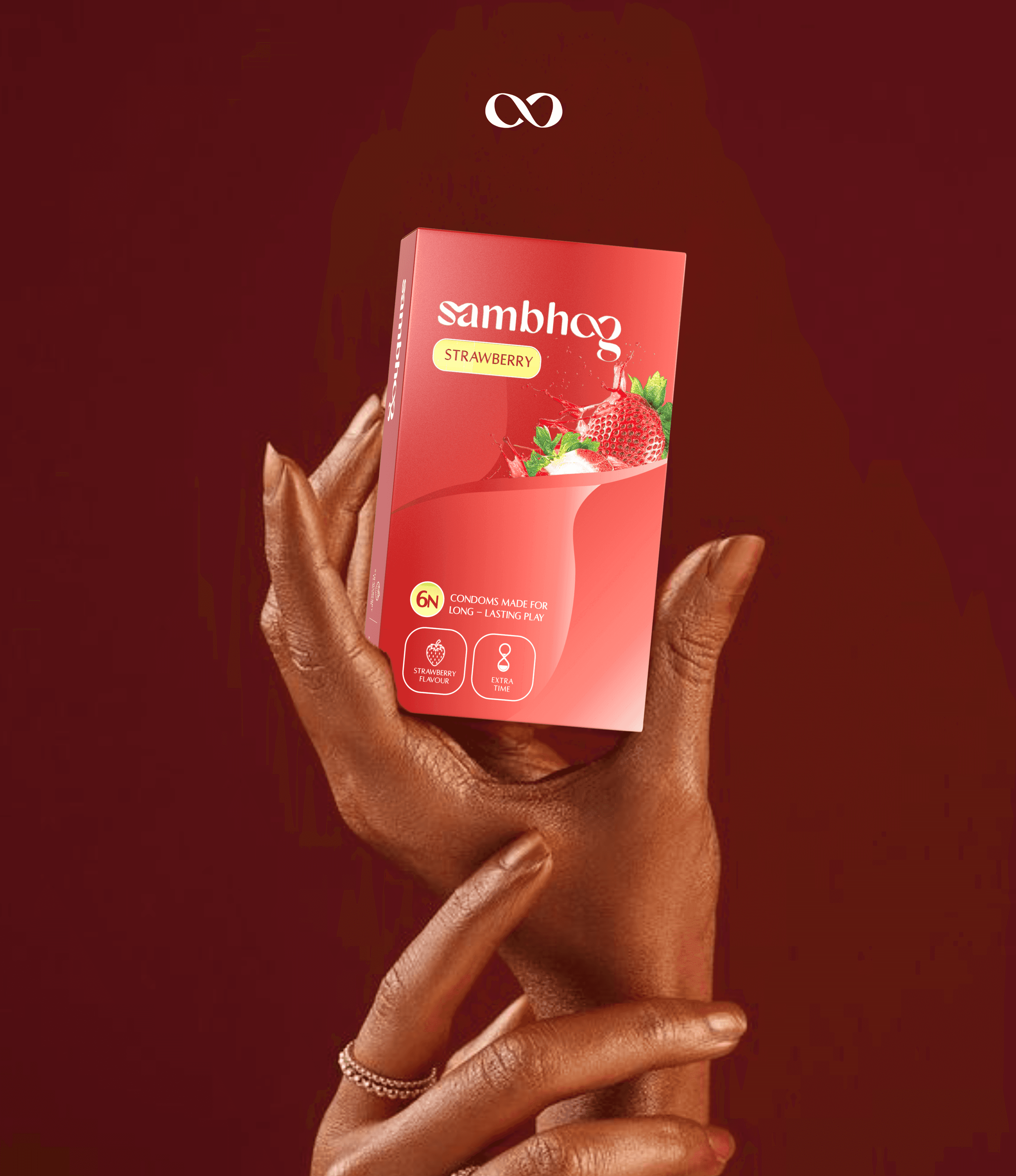For Sambhog's packaging design, we used the brand's main component - the infinity symbol, formed by intertwined 'o's in the logo. This symbol flowed elegantly across the packaging through subtle dotted patterns, symbolizing continuous connection and endless moments.