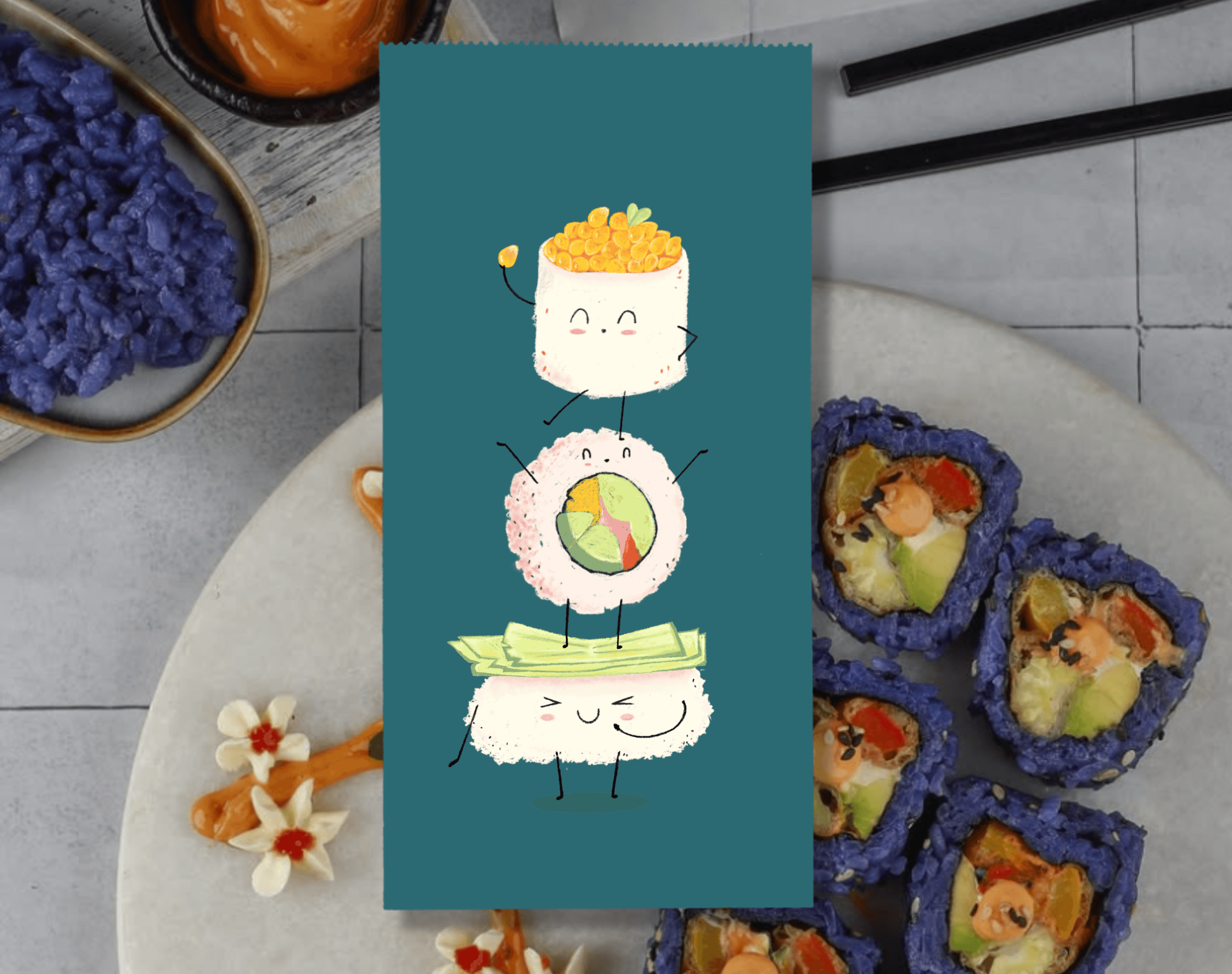 Staying true to these values, we designed packaging that made unboxing sushi an experience—a laid-back, playful moment beyond just the food. Hand-drawn illustrations and a witty, light-hearted tone balanced warmth with modern minimalism, adding personality to every element.